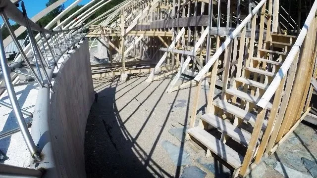 Robert Green (on the far right) explains to us about the other houses in the neighbourhood from his balcony.